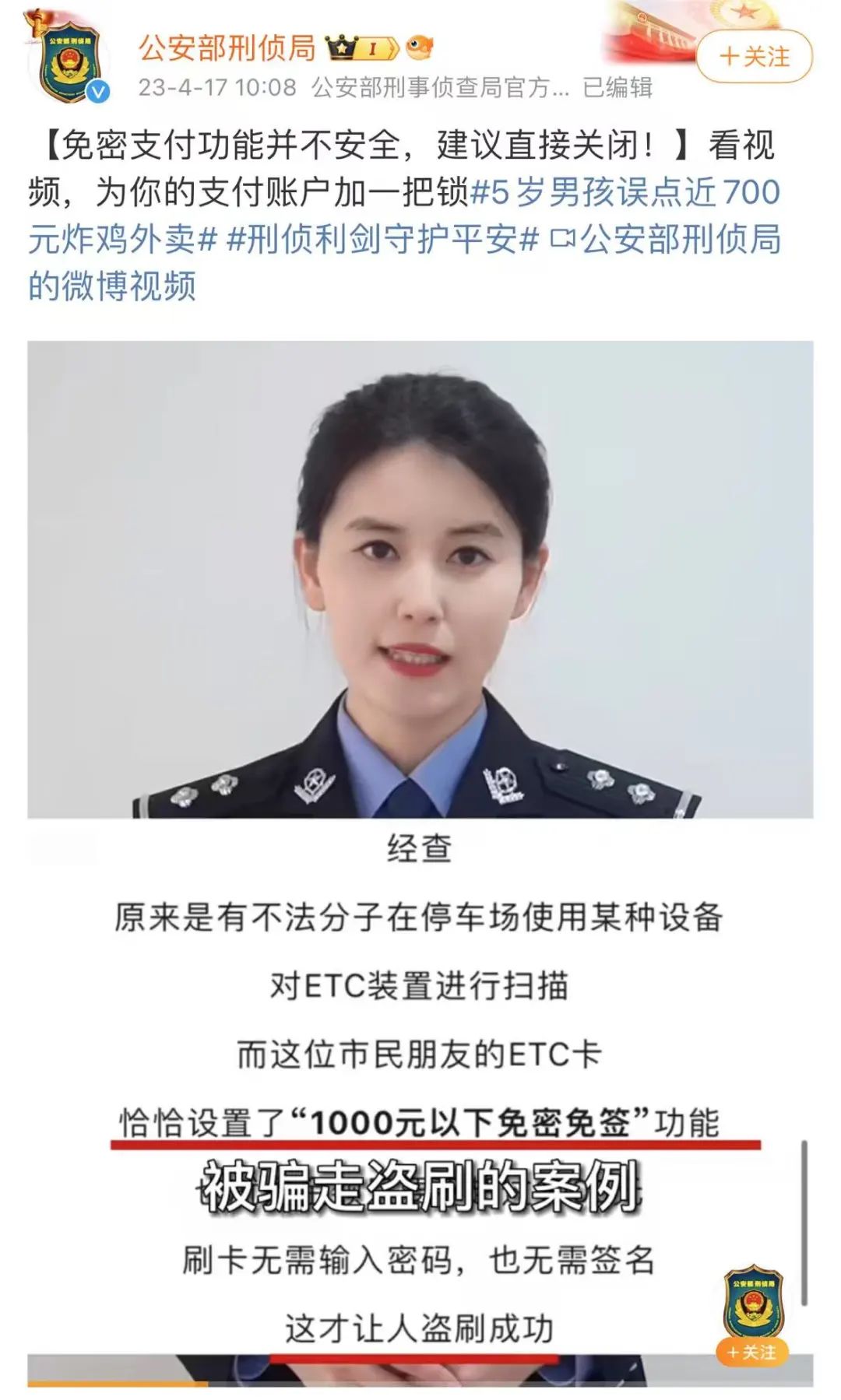 公开报道显示,近年来,全国各地出现过多起因为事主开通免密支付功能,通过直接扫码,或者将付款码转发给他人导致手机内钱款被骗走、盗走的案例。公安部刑侦局甚至曾发出提醒,“免密支付功能并不安全,建议直接关闭”。