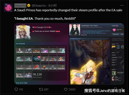 这位热衷《Dota 2》和皮肤收集的沙特王子,在 EA 完成私有化当天就把 Steam 昵称换成 “I bought EA”,字里行间的 “土豪气” 隔着屏幕都能感受到。要知道这笔交易可不是小数目,由沙特公共投资基金、银湖资本等组成的财团,掏出的钱比 2007 年 TXU 能源公司的收购案还多,堪称近年最大规模的杠杆收购之一。