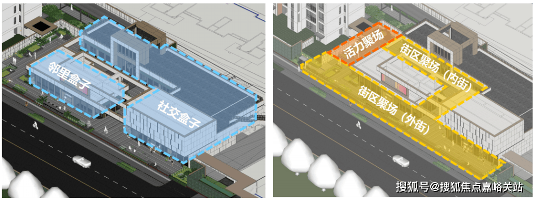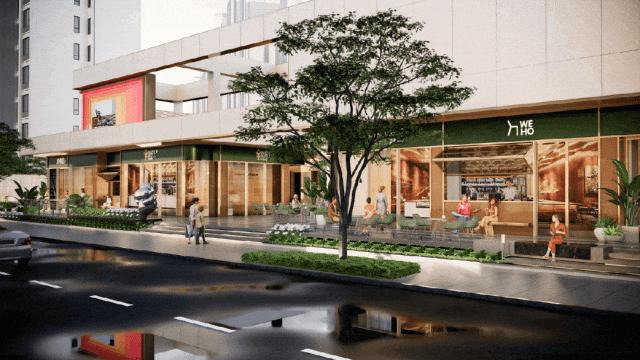 项目外部立面展现了清晰的体块和流畅的线条,展现出一种年轻而又和谐的时尚氛围。