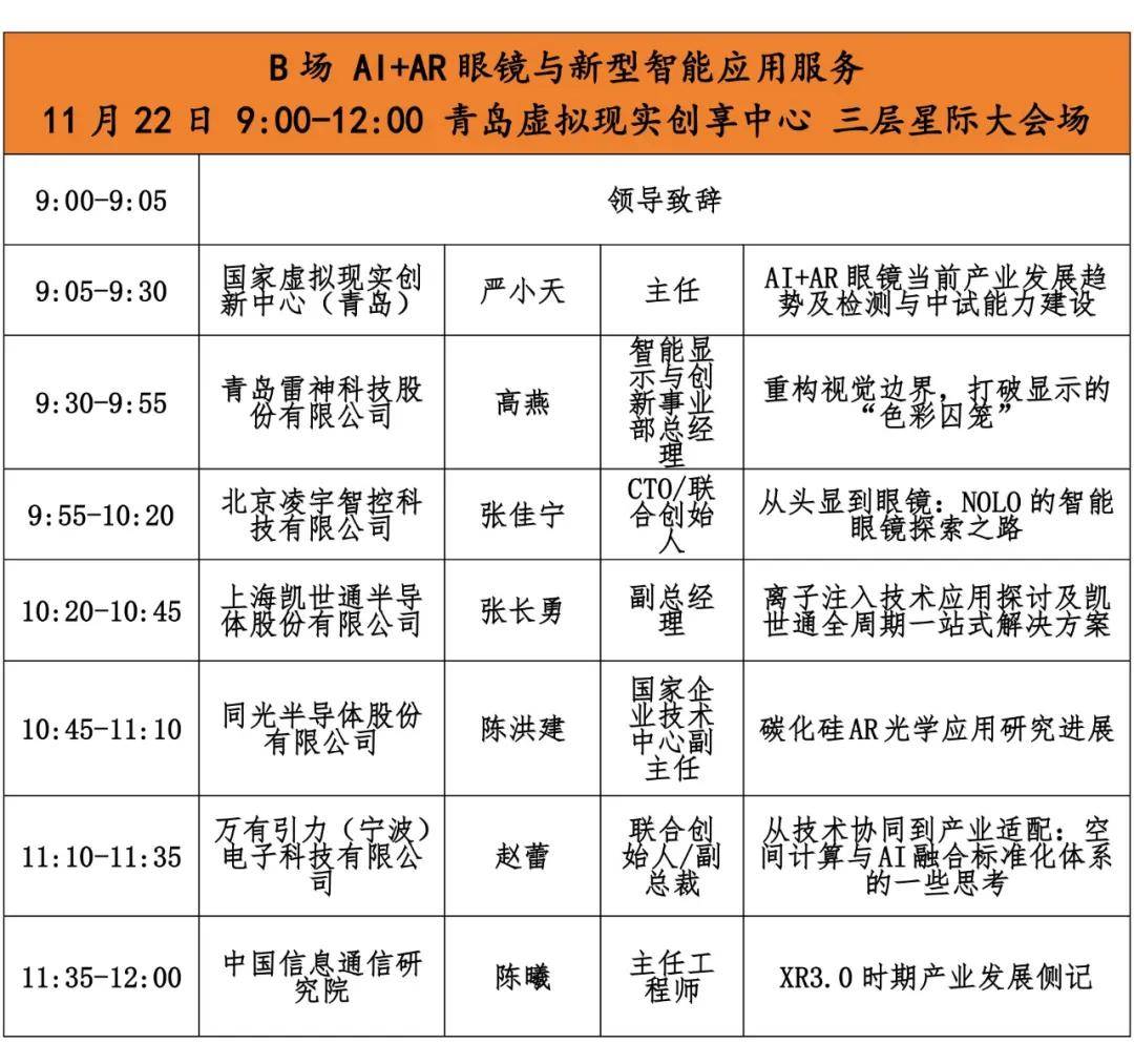 11月22日 9:00-11:30 青岛虚拟现实创享中心 三层星际大会场