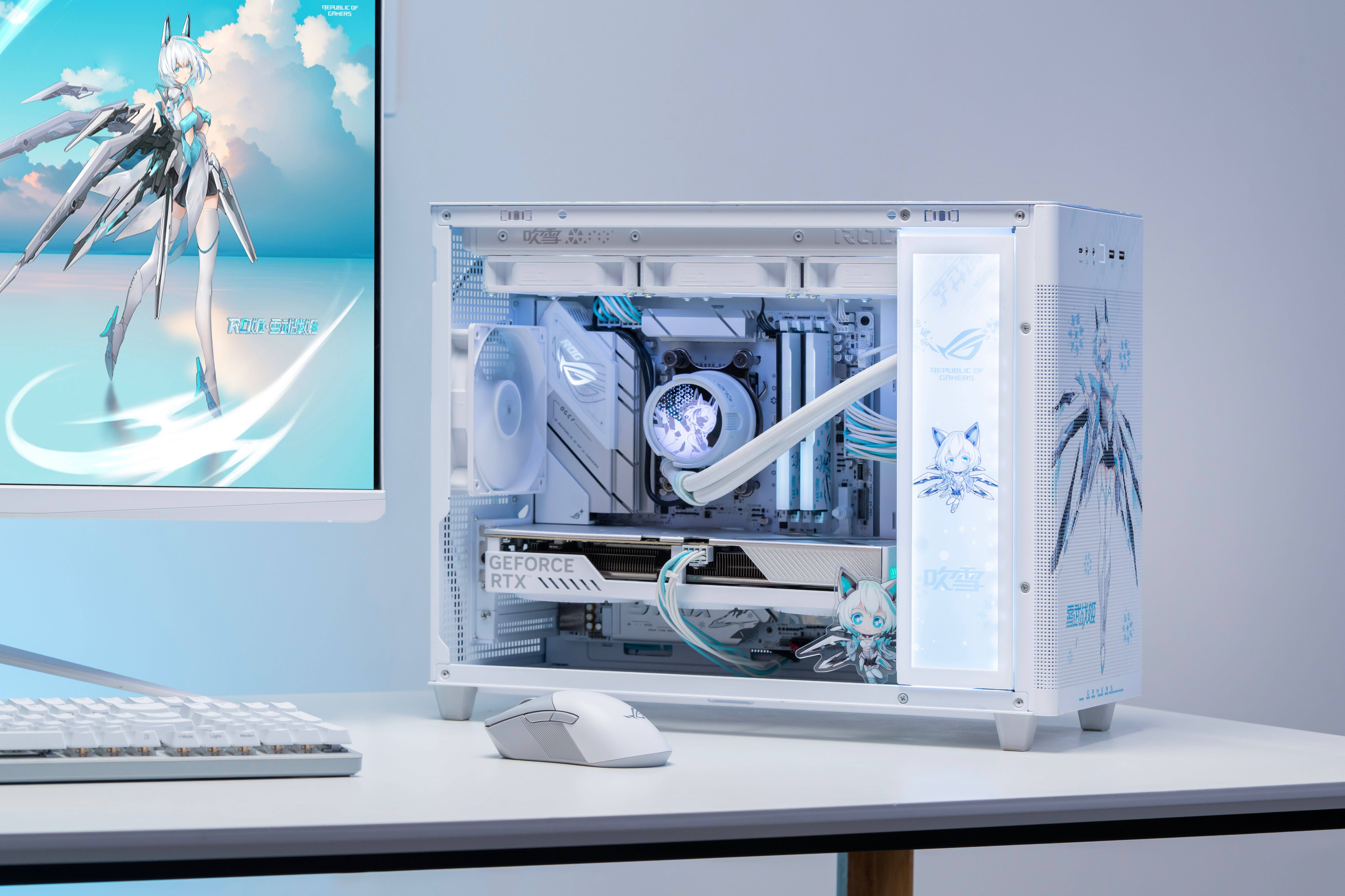 主板是整套主机的基石,十分重要。这里推荐的是吹雪家族新成员——华硕B850小吹雪主板。其以突破性设计重塑电竞美学,加入雪武战姬主题元素,银白装甲搭配白色内存插槽和浅色PCB,白的彻底。再配合上支持神光同步的ROG LOGO,构建次元美学新标杆!