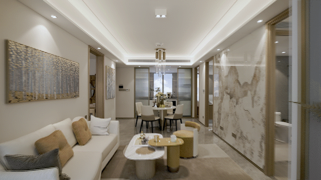 2、约5.7米宽厅,功能分区明确,生活动线井然有序。格局上实现了真正的全明空间与南北通透,生活空间张弛有度。