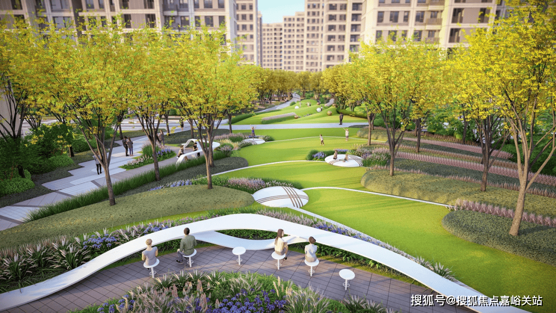 这六大功能价值为主,并且融合由三条不同主题的林荫步道和三个圆形景观节点组成的“绿林项链”全区漫步系统,共同构成全区“6+1”森O₂家园系统。行走其间,甚至能想象到,夏日傍晚在艺术景观客厅纳凉,习习凉风从树荫下拂过。