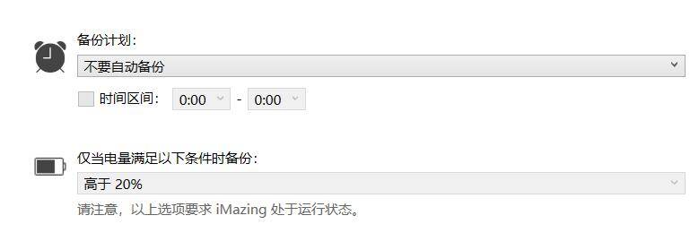 在iMazing 2中,新增了备份计划功能。通过备份选项中的“自动备份”,可以选择备份计划,在此功能中,可以为每个设备配置自动备份计划和备份条件。在备份选项中更改自动备份设置,可以进入到备份计划页面。