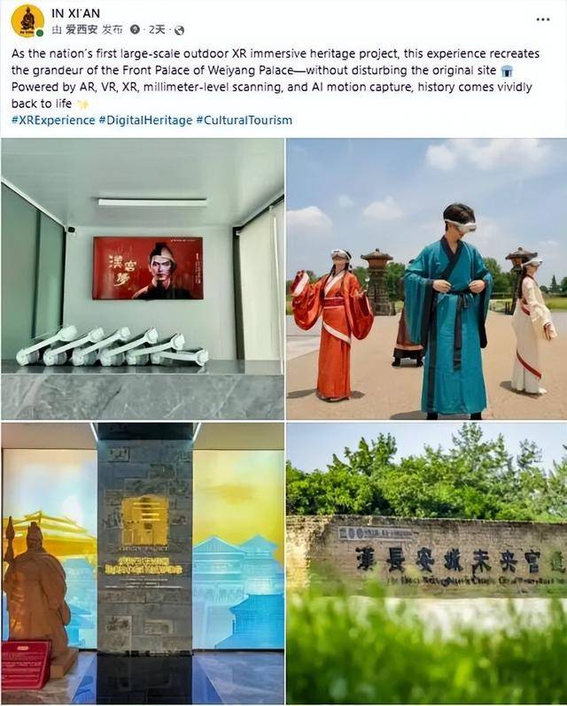 IN XIAN在Facebook、X和Instagram平台分享未央宫前殿XR沉浸式文遗项目相关内容。围绕“全国首个大型户外XR沉浸式文化遗产项目”这一定位展开,强调在不干扰遗址本体的前提下,通过AR、VR、XR、毫米级扫描及AI动捕等技术手段,复原汉代未央宫前殿的恢宏气象,展现西安在数字文博与文化遗产保护融合发展方面的探索成果与示范意义。该帖文目前收获超6.6万浏览及6500+次互动。