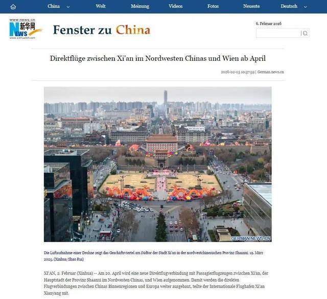 China Daily发布报道《China Eastern Airlines announces new Xian-Vienna route》(中国东方航空宣布开通西安—维也纳直飞航线)。报道称,中国东方航空将于4月20日开通西安至奥地利首都维也纳的直飞航线,这是中国西北地区首条直飞奥地利的航班。该航线将使中国东方航空飞往欧洲的航点增至27个,并有望推动两地的经济合作、文化交流和旅游发展。航班每周一、四、六运营,自西安咸阳国际机场凌晨1:30起飞,当日(当地时间)晚间从维也纳返程。