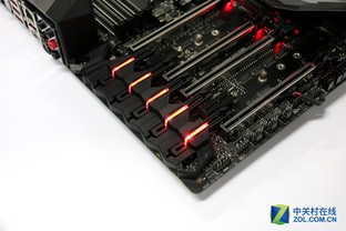 在中部增加的ROG铭牌还可以作为M.2设备的散热片来使用,降低硬盘温度。